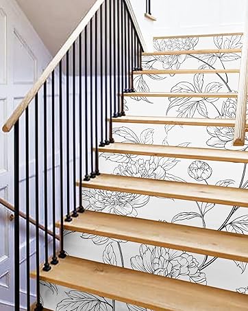 funlife 14Pcs Self-Adhesive Vinyl Stair Riser Stickers, Peel and Stick Staircase Decal Contact Paper, 39.37"x7.09" Pure Plain White