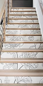 funlife 15Pcs Vinyl Peel and Stick Stair Riser Stickers, Self-Adhesive Staircase Riser Decals, 39.37"x7.09" Botanical Flowers and Meadow