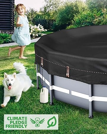 QH.HOME Winter Round Pool Cover for 18 Ft Bestway/Intex/Coleman Frame Above Ground Pool, [Excellent Windproof ] with Fast Tightening Patented Ratchet& Weight-Bearing Rings,Cold and UV Resistant